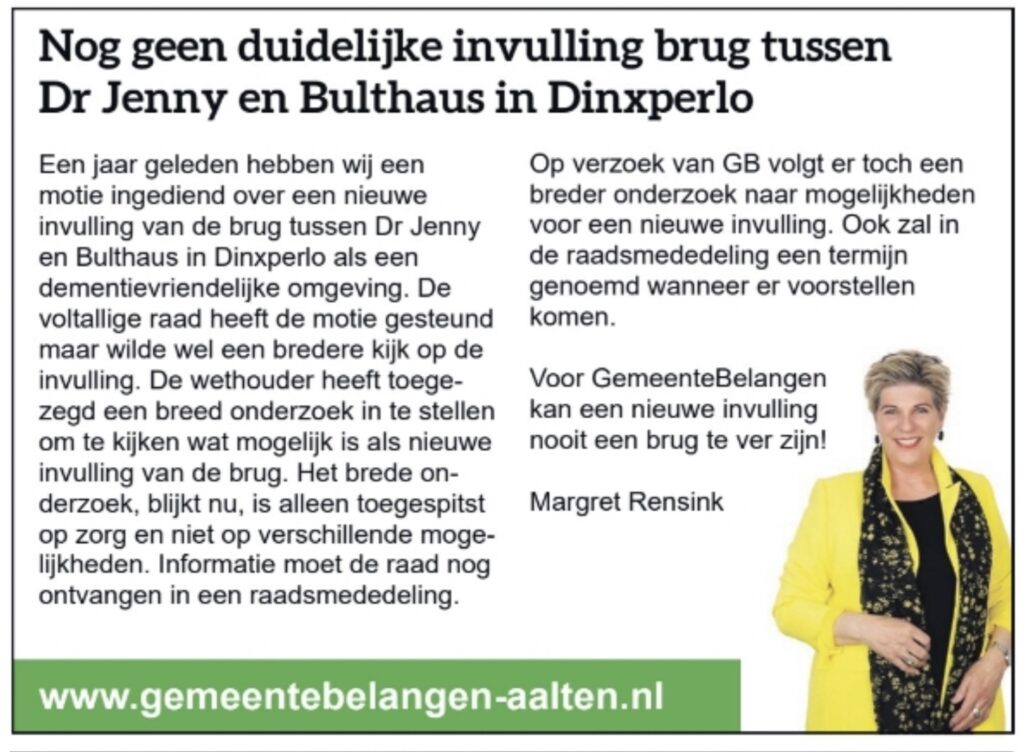 GemeenteBelangen Aalten staat dicht bij de mensen die hier wonen en werken. Wij vinden het belangrijk dat politiek voor onze gemeente uit onze gemeente komt.